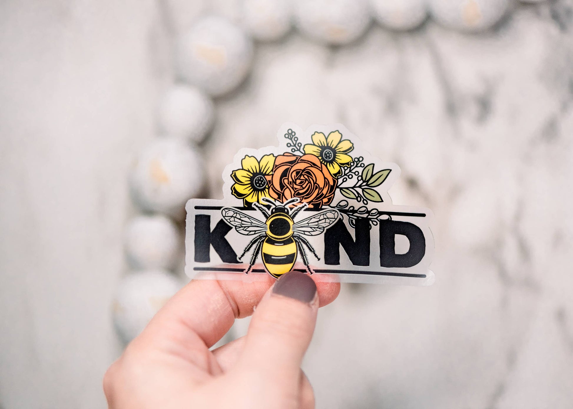 Bee Kind Clear, Vinyl Sticker, 3x3 in.