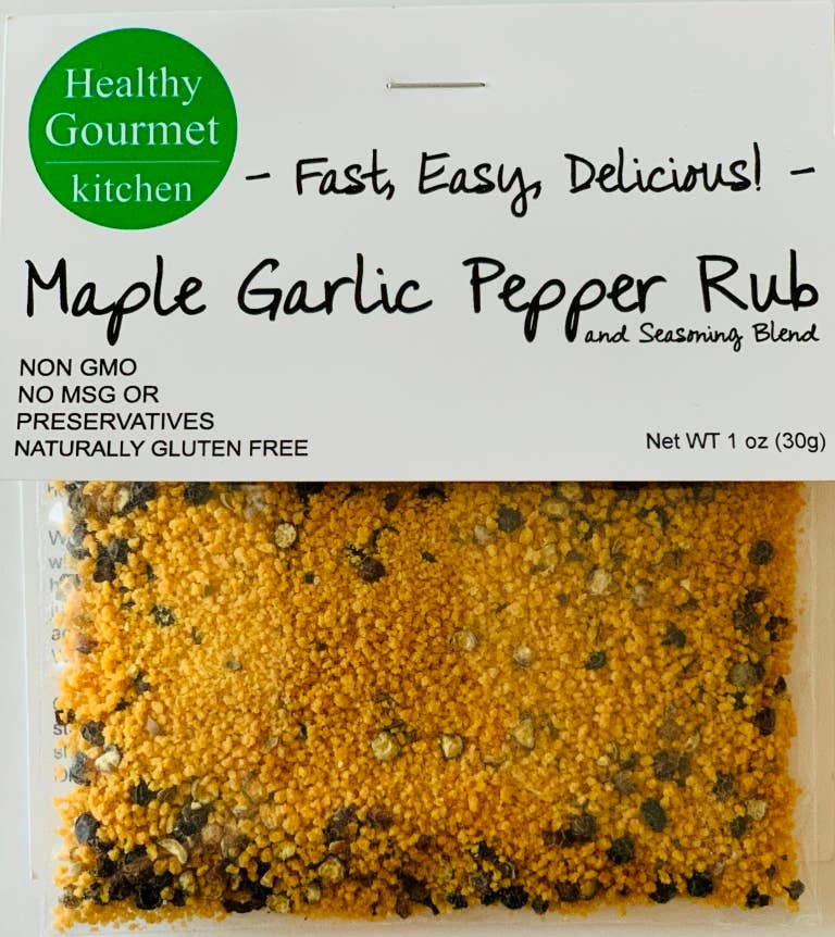 Pure maple sugar from the Green Mountains of Vermont which is local to our kitchen, freshly cracked black pepper, sea salt and garlic! Yum!