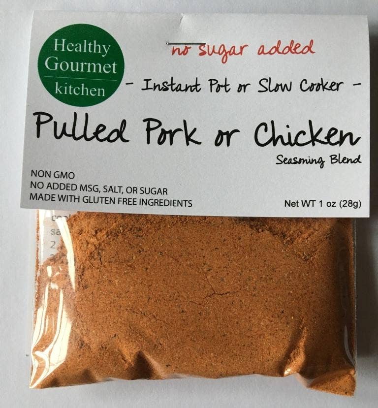 Delicious pulled pork or chicken seasoning mix. No salt or sugar added. One of our most popular slow cooker seasoning mixes - can also be used in oven or smoker.