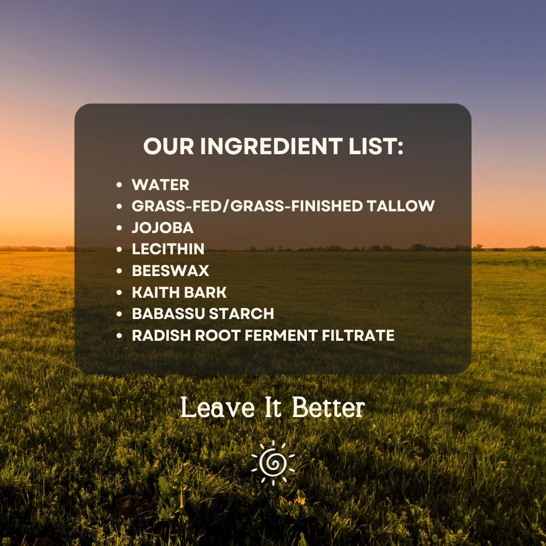 - Skin Biocompatible Tallow Sunscreen formula means no greasiness or breakouts.